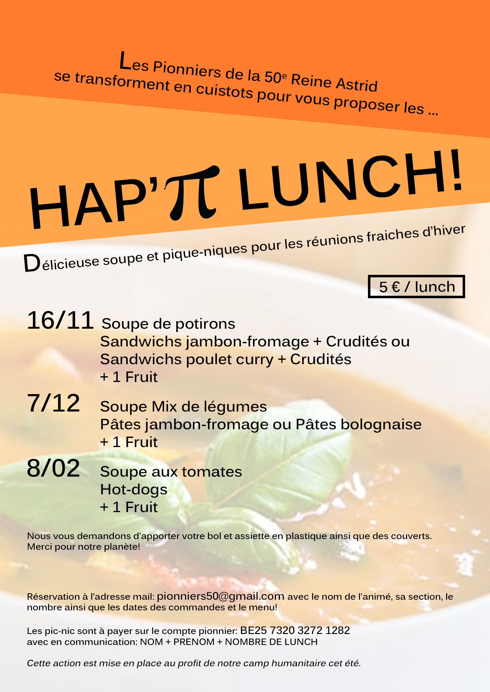 Envie de soutenir les pionniers de l’unité ? Commandez votre hap’PI lunch pour la prochaine réunion ! Les commandes se font ici.
