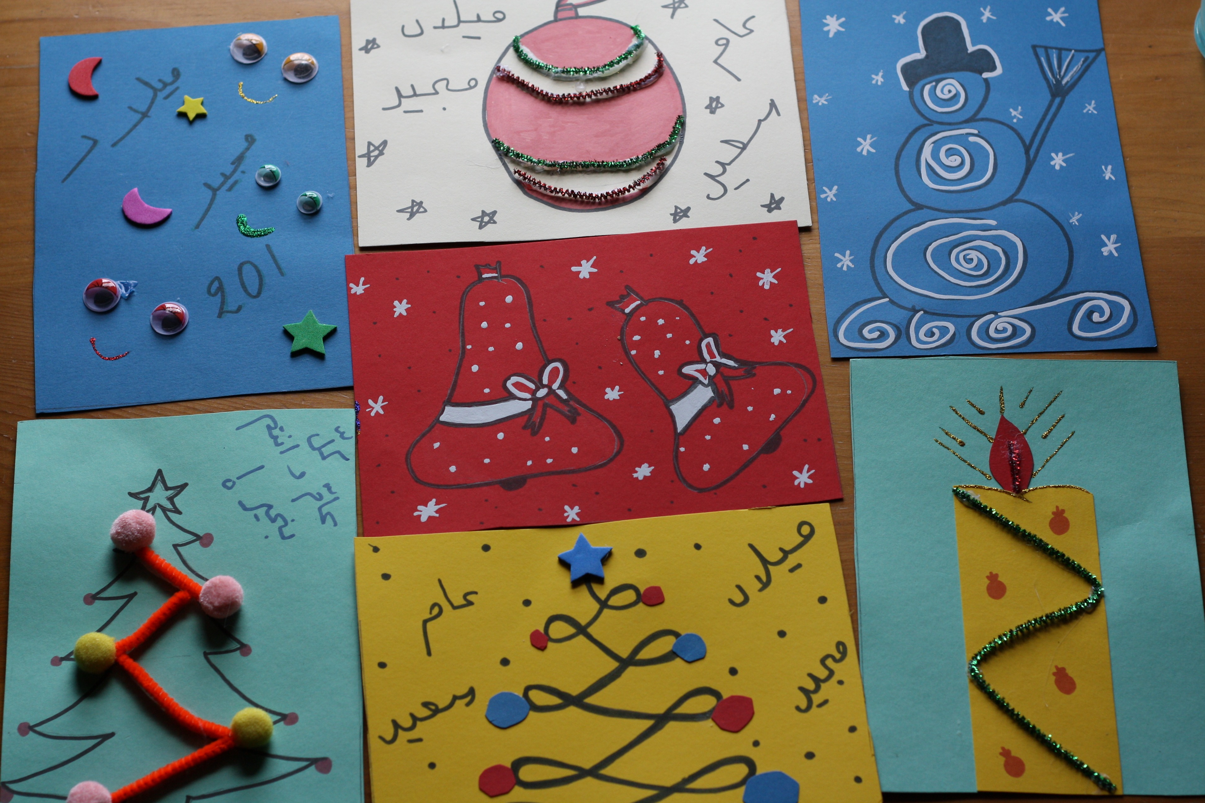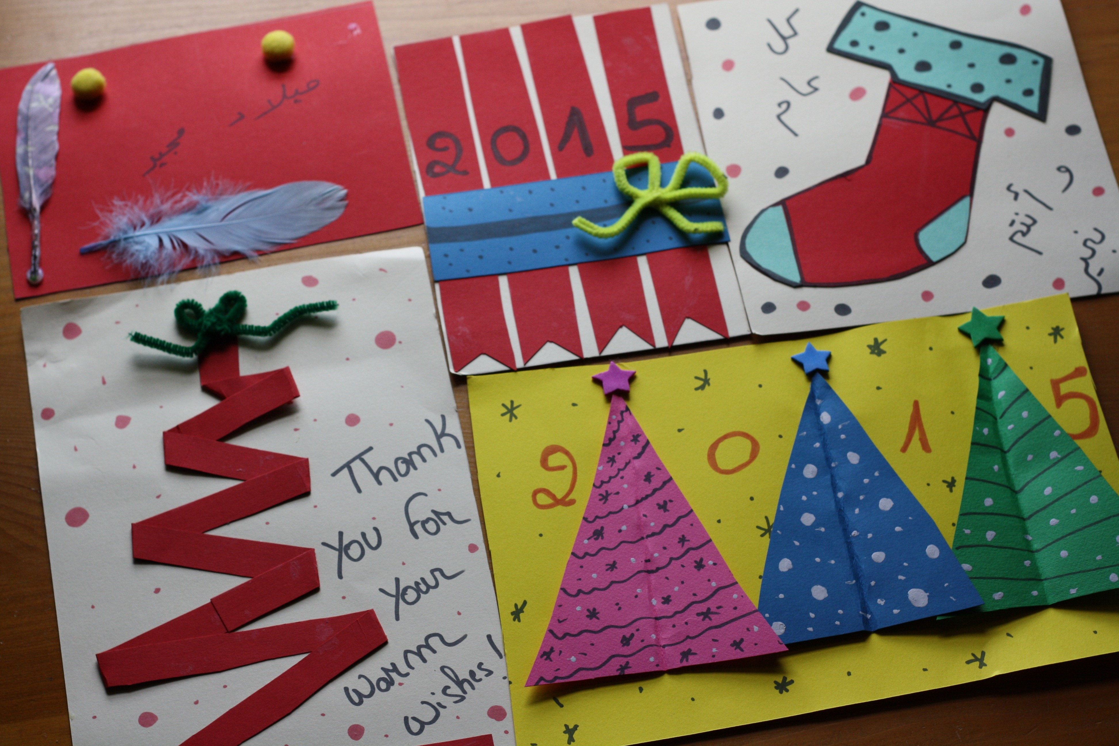 Vous souvenez-vous ? Pendant la veillée de Noël, nous avons fabriqué de belles cartes de vœux qui ont ensuite été envoyées à un centre de jeunes réfugiés du Liban.
