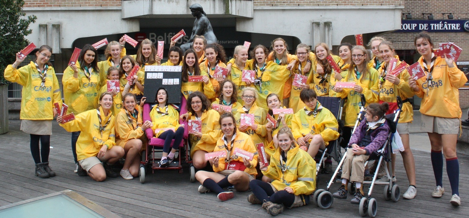 Vous l’aviez sans doute lu il y a quelque jours, la grande usine de yaourts de Louvain-la-Neuve avait explosé ce samedi 4 octobre ! Une nouvelle équipe étant appelée pour reprendre la direction de l’usine et la reconstruire, nos 4 patrouilles se sont réunies afin d’essayer de décrocher ce privilège… La matinée, un jeu de piste les a donc menées dans la ville afin de rejoindre le site de l’usine par un chemin détourné car les policiers gardaient la zone. Une fois que les 4 patrouilles ont pu rentrer dans la zone de l’ancienne usine, le « combat » a pu commencer ! Chaque groupe avait son urne à remplir avec des points récoltés de deux manières : récolte de fonds ou démonstration de ses capacités à diriger l’usine de yaourts. Le meilleur moyen de récolter des fonds était de…vendre des post-it CAP48 ! Dans chaque urne, une boule contenait un contrat de rachat de l’usine. En remplissant l’urne avec de l’eau (c’est à dire, en gagnant des points), la boule montait à la surface jusqu’à devenir saisissable. Au final, ce sont donc… les éléphants qui ont pu récupérer en premier leur contrat de rachat et le signer, l’usine est donc à elles : félicitations !